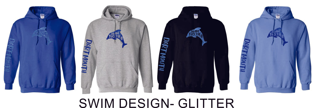 Gildan Dry-Blend 50/50 Black, Grey, Royal, or Light Blue hooded sweatshirt. Unisex youth and adult sizes. Choose from 4 designs in Matte or Glitter